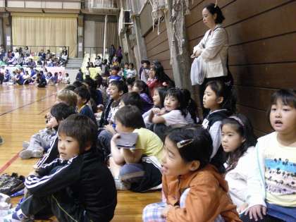 わかたけ学級の連合運動会の応援をしに中央体育館に行きました。