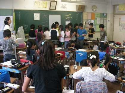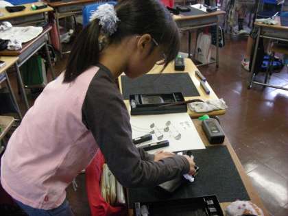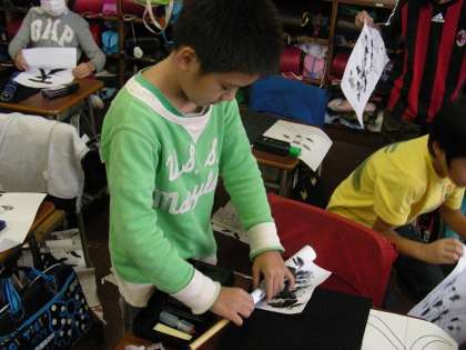 1組ではいかにきれいに墨を拭き取るかを自ら考え、片付けに取り組んでいます。