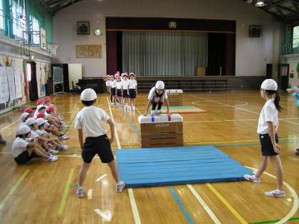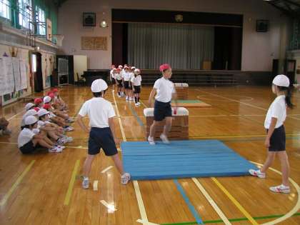 跳び箱を横にしてたくさん跳びました。