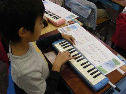 「よろこびのうた」を鍵盤ハーモニカで演奏します。