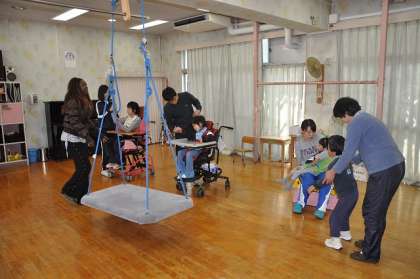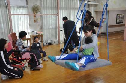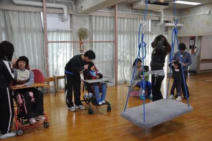 音楽と歌に合わせて体を動かしました。顔を洗ったり、歯を磨いたりするジェスチャーもしました。