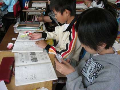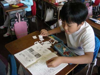 色々な形の三角形を教材から切り取って共通しているものを集めました。