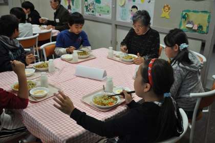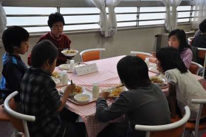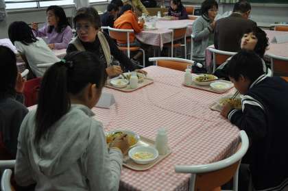 給食も地域の皆さんと一緒に食べました。
