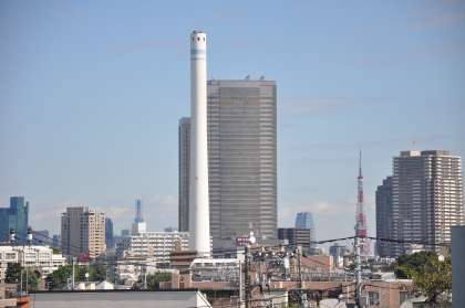 秋晴れの中に、油面小から東京タワーと建設中のスカイツリーが見えました。