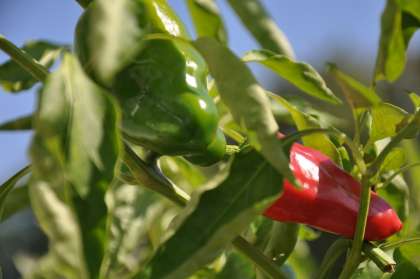 校庭の一角に真っ赤に色付いたピーマンがありました。