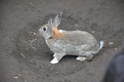 飼育小屋の中で子どもたちがウサギの観察をしました。