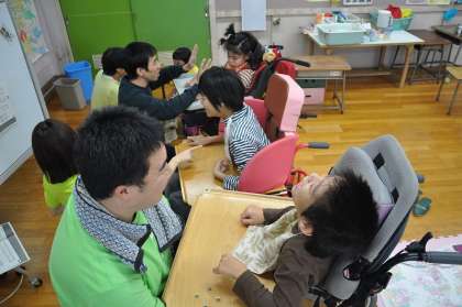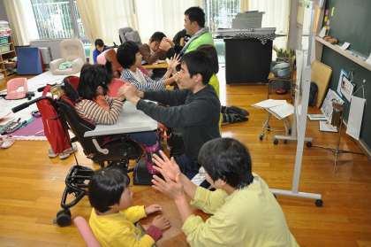 手をたたきましょうの歌を歌いながら、動作をつけました。
