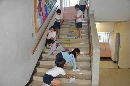 教室はもちろん、みんなで使う場所もきれいに掃除をしています。