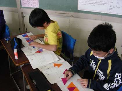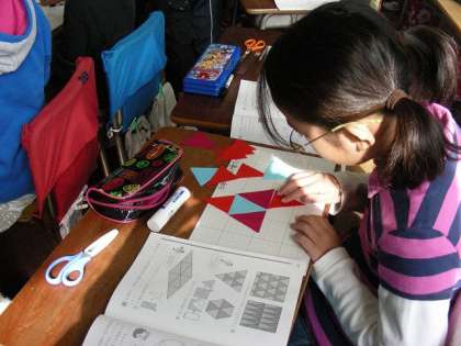 正三角形を作って色ごとに敷き詰めました。