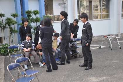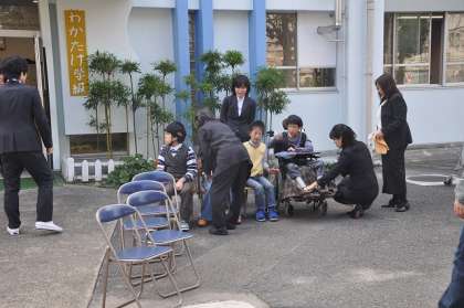 わかたけ校舎前で卒業アルバムの写真を撮りました。