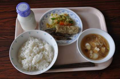 今日はいい歯の日です(11月8日)。よく噛んで食べていますか?よく噛んで食べることは健康のためにとても大切なことです。かみごたえのある食べ物を食べましょう。今日の給食のキビナゴは骨ごと食べられます。