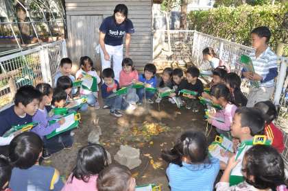 1年2組の子どもたちが飼育小屋の中でウサギの観察をしました。