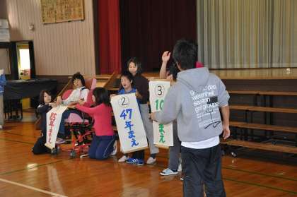 係になった子どもたちが、開校85周年記念集会でおこなうわかたけクイズのリハーサルをおこないました。