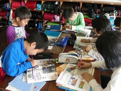 動物や図形など、色々な形が出来上がりましたが、ある班は「3年1くみ○」という光を作ることに成功しました。