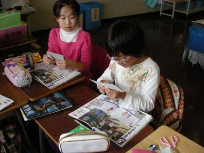 教室に戻って画用紙を色々な形に切って鏡にかぶせました。