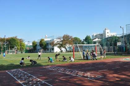 風が強い今日は、校庭にもたくさんの落ち葉がありました。4年2組の子どもたちががんばって落ち葉ひろいをしました。