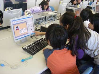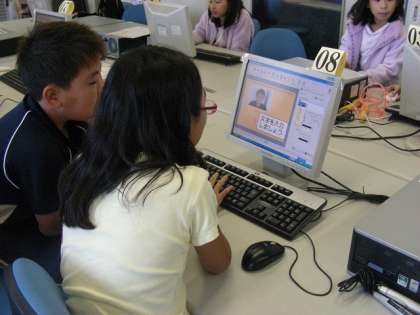 発表支援ソフトを使って、今までの成長を振り返るスライドを作っています。今日は表紙に自分の顔を貼り付けました。