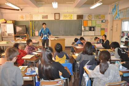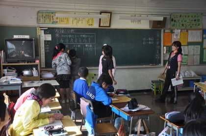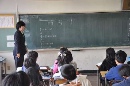 少人数指導で3つの教室に分かれ、分数の学習をしています。