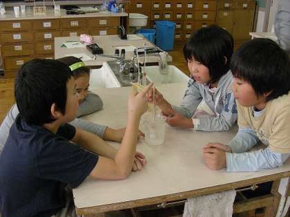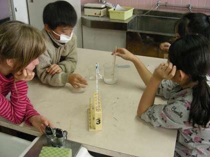水は0度になると凍り始め、また水の体積が増えることに気がつくことができました。