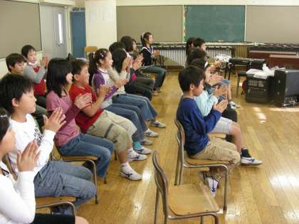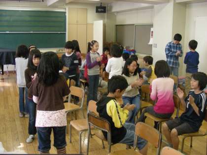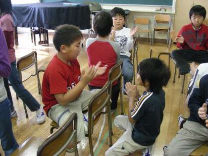 「冬の歌」でタンバリンや鈴のリズムあわせをしました。