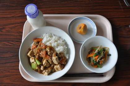今日の果物はわかたけの校庭になっていた「かき」です。用務主事さんがたくさん取ってくれました。柿の種類はわかりませんが、味をみたら甘かったので調理師さんに皮をむいてもらい給食に出しました。