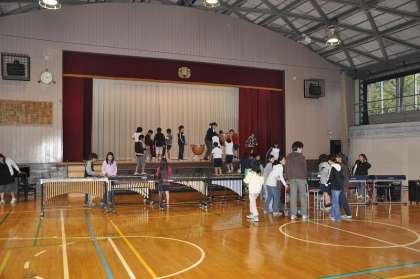 5年生が、連合音楽会の練習を体育館でおこなうために、協力して楽器を体育館に運びました。