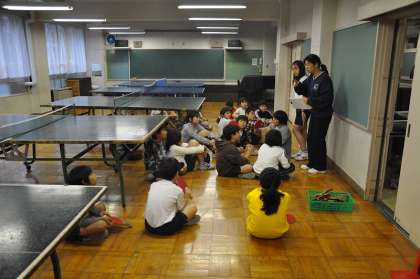 今日の活動の確認をしたあと、ダブルスの練習開始です。