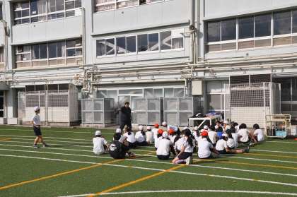 、ボールを投げること、グローブを使ってボールをとることの練習をチームごとに進めました。
