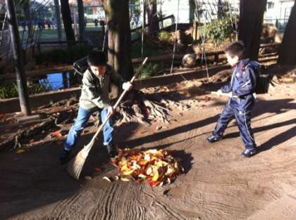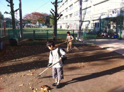朝、2年生の子どもたちが落ち葉を拾ってくれています。ありがとう。