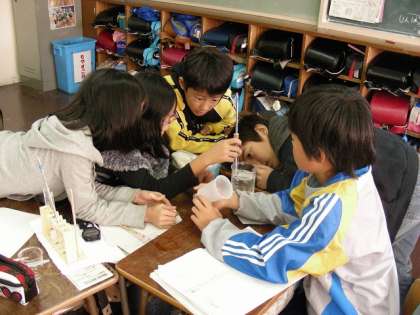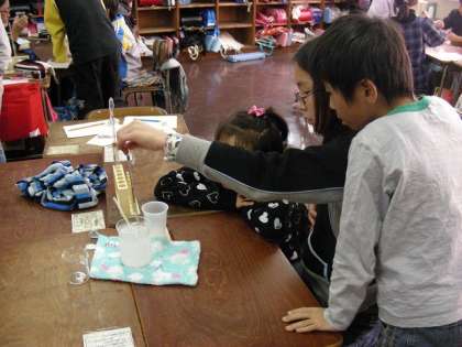 水は0度になると凍り始め、また水の体積が増えることに気がつくことができました。