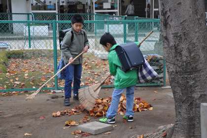 2日間の休みの間にたくさんたまった落ち葉を、登校してきた2年生が集めてくれました。ありがとう。