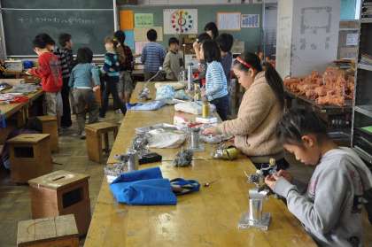 今日が制作の最終日です。子どもたちは、作品を仕上げるために、がんばっています。