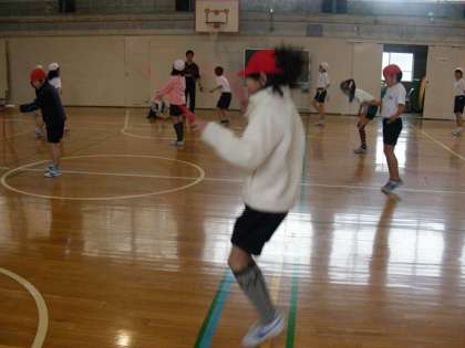 高とびの学習に入る前に縄跳びをしました。