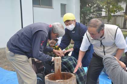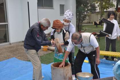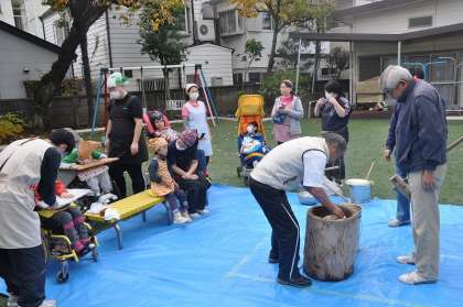 1組と2組の子どもたちが、つきました。そして、おいしそうなお餅ができあがりました。
