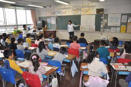 登場人物の行動を確かめながら、音読をしています。