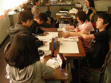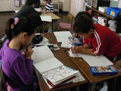 油面小学校のあるものについて新聞作りをしています。