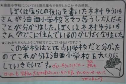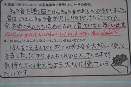 11月10日に開いた「開校85周年記念集会」を終えての子どもたちの感想を紹介します。