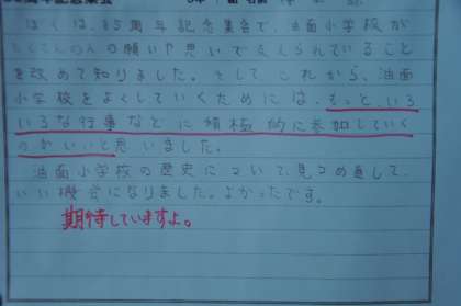 11月10日に開いた「開校85周年記念集会」を終えての子どもたちの感想を紹介します。
