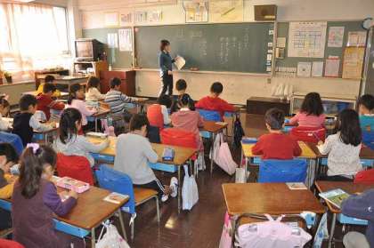 2年生が明日からおこなう子ども郵便局に出すはがきを書いています。