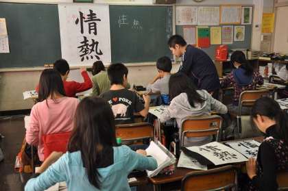 書写で「情熱」の練習をしています。