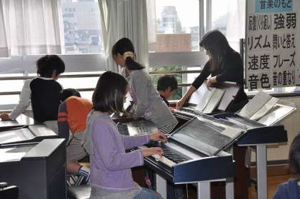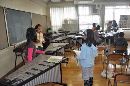 音楽で「とんび」の合奏の練習をパートごとに進めています。