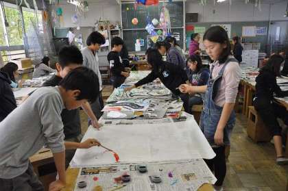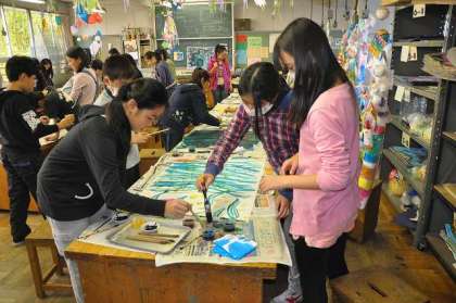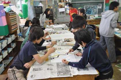 各班でテーマ決め、共同作品を制作しています。