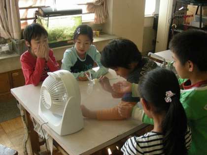 「回る速さ」、「回る音の大きさ」、「さわった感じ・手ごたえ」をそれぞれ調べました。