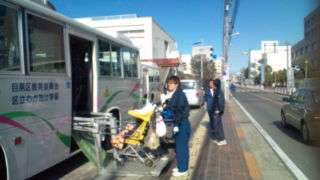 11:30 バスに乗り、都立光明特別支援学を出発し、学校に向かいます。