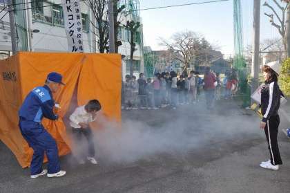 煙に巻き込まれたときに、どのように自分の命を守るかを体験し学びました。体験したあと、分かったことを確認しました。