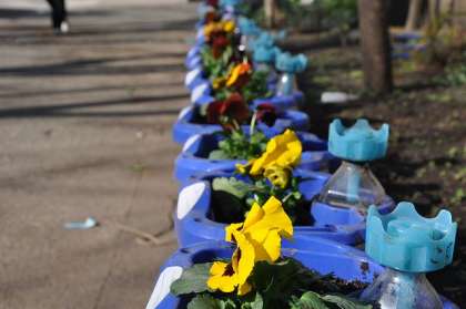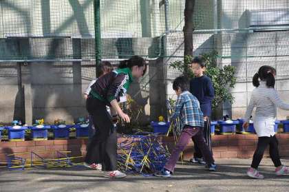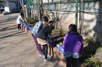 先日の2組に引き続き、1組もパンジーの苗を植えました。ビオトープ前がとても明るくなりました。