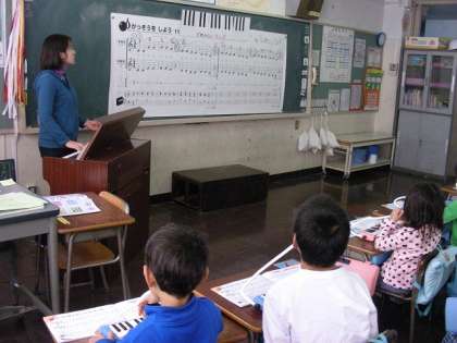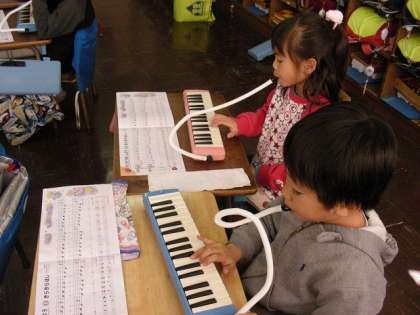 鍵盤ハーモニカ「きらきらぼし」を合奏しています。
