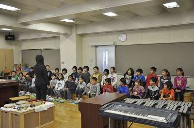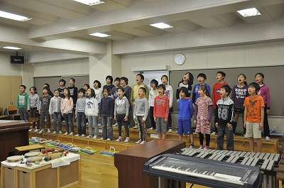 反省した点に気をつけて、牧場の子牛を見てイメージしながら全員で合唱しました。