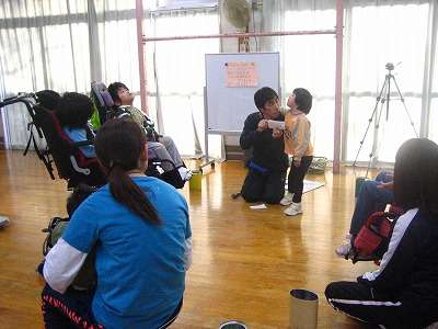 研究授業中です。「お茶を飲みに来ませんか」が終わった後で、日直があいさつをしました。児童の下校後、筑波大学の教授を講師に、望ましい指導のあり方について協議しました。