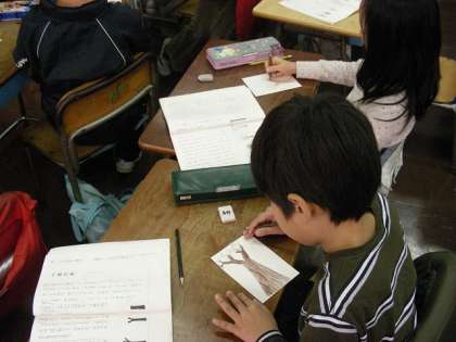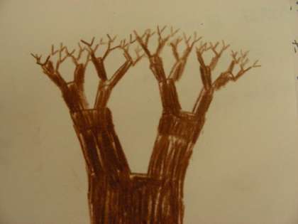 一本の木を読みながら文章に合わせて絵を描いています。